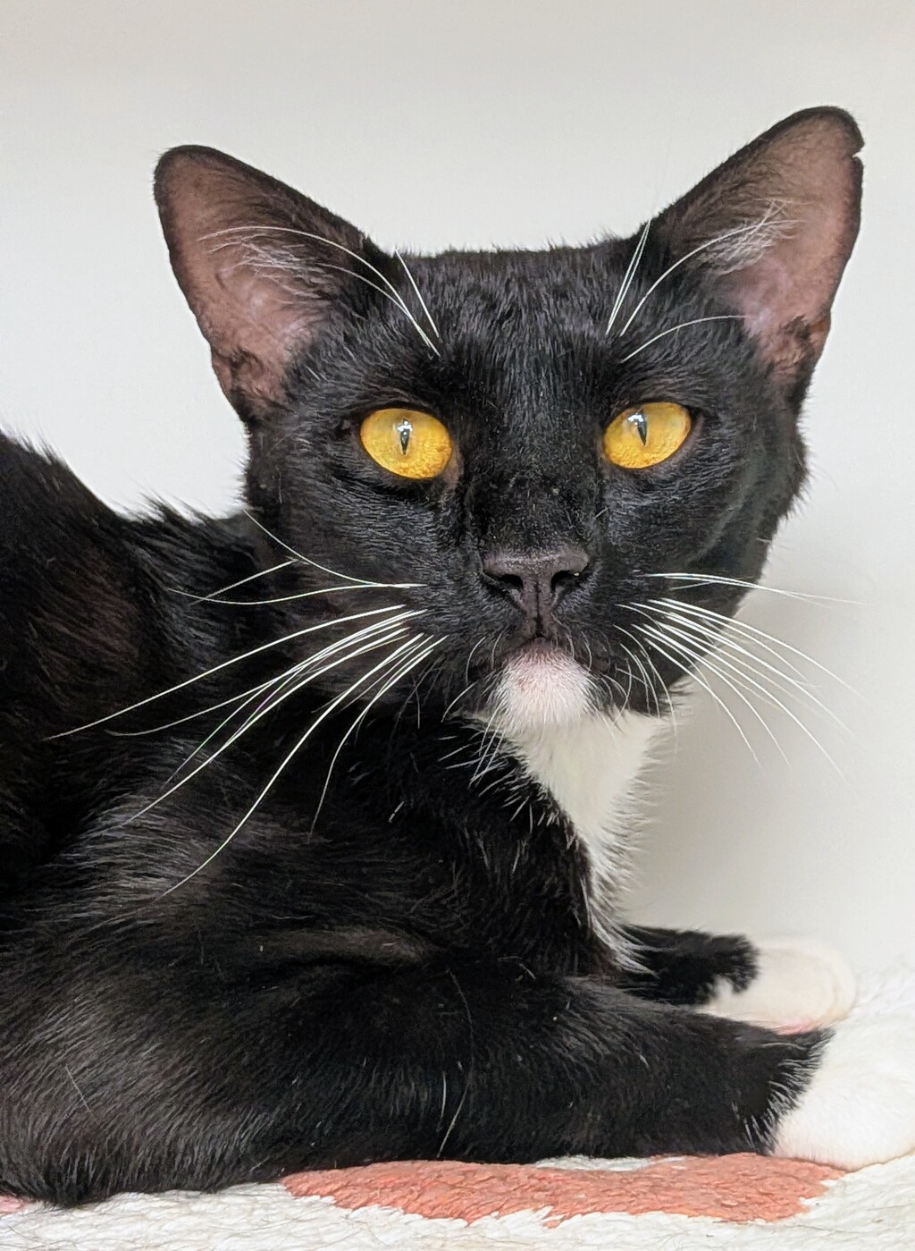 This handsome black-and-white gentleman exists in a constant state of purr-tential - simultaneously snoozing, exploring and demanding snacks until you open the treat packet. With brilliant yellow eyes that seem to know the secrets of the universe, Quantum Biscuit is equal parts suave scientist and silly goofball.