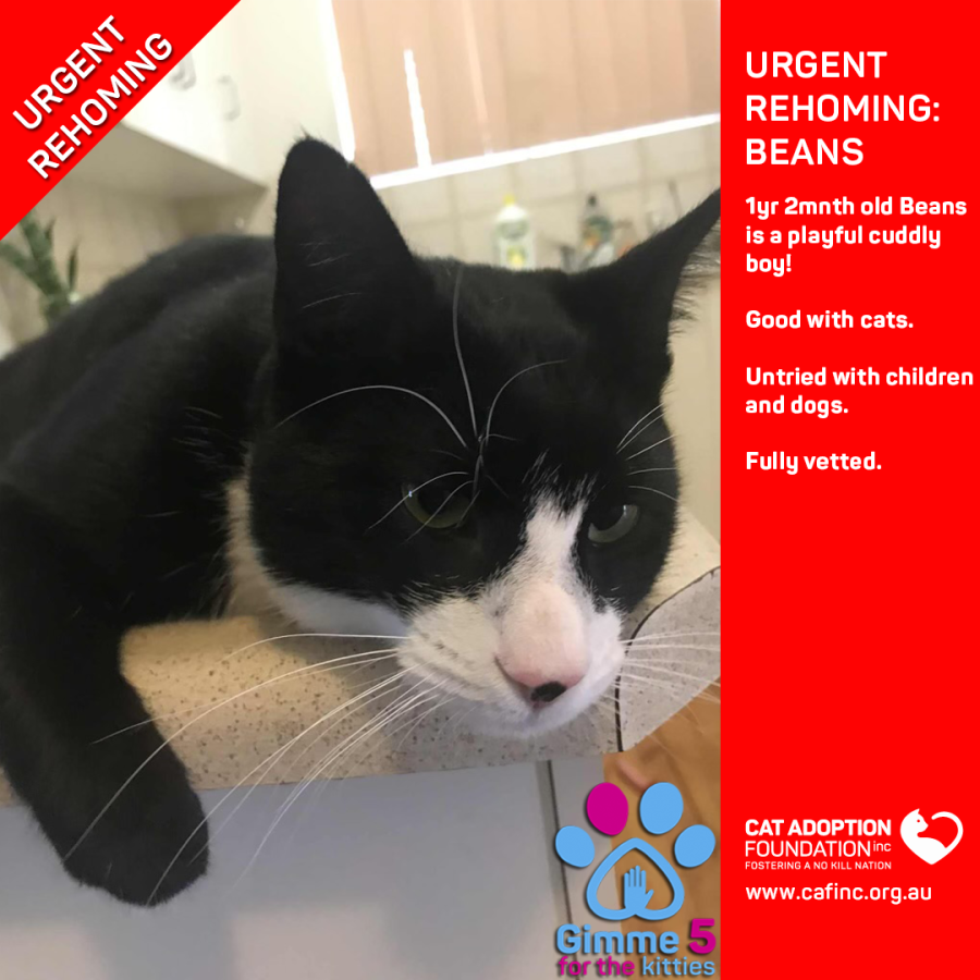 Donate to Beans at Cat Adoption Foundation Incorporated via Shout