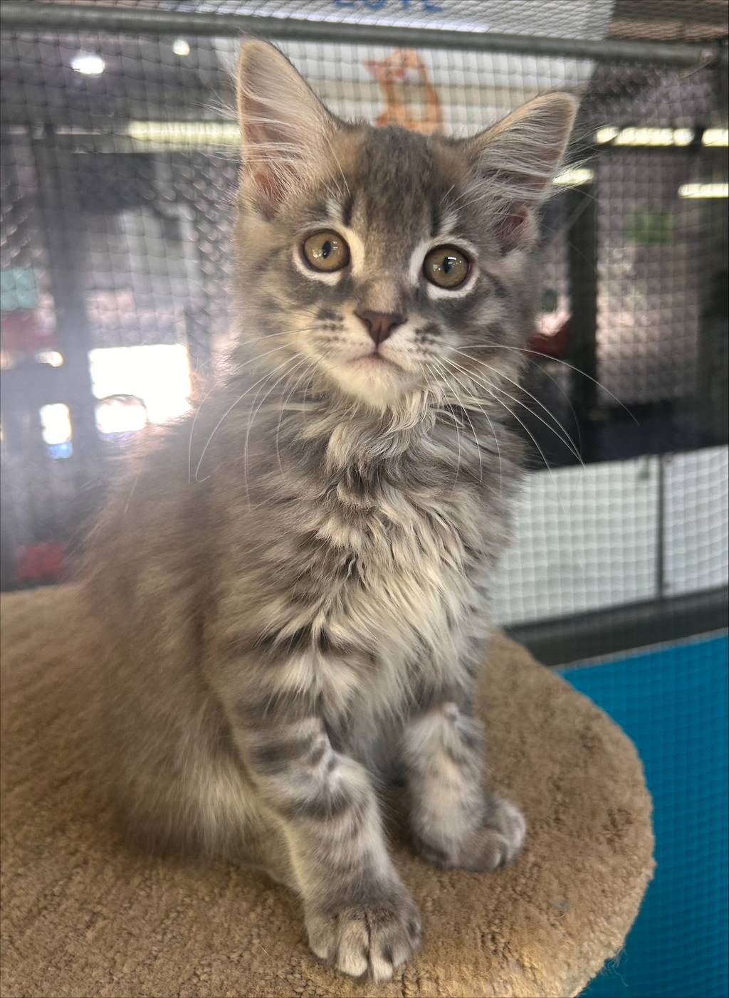 In all seriousness I am the odd one in my litter being a grey fluffy instead of a brown tabby. I am affectionate and snuggly and playful.