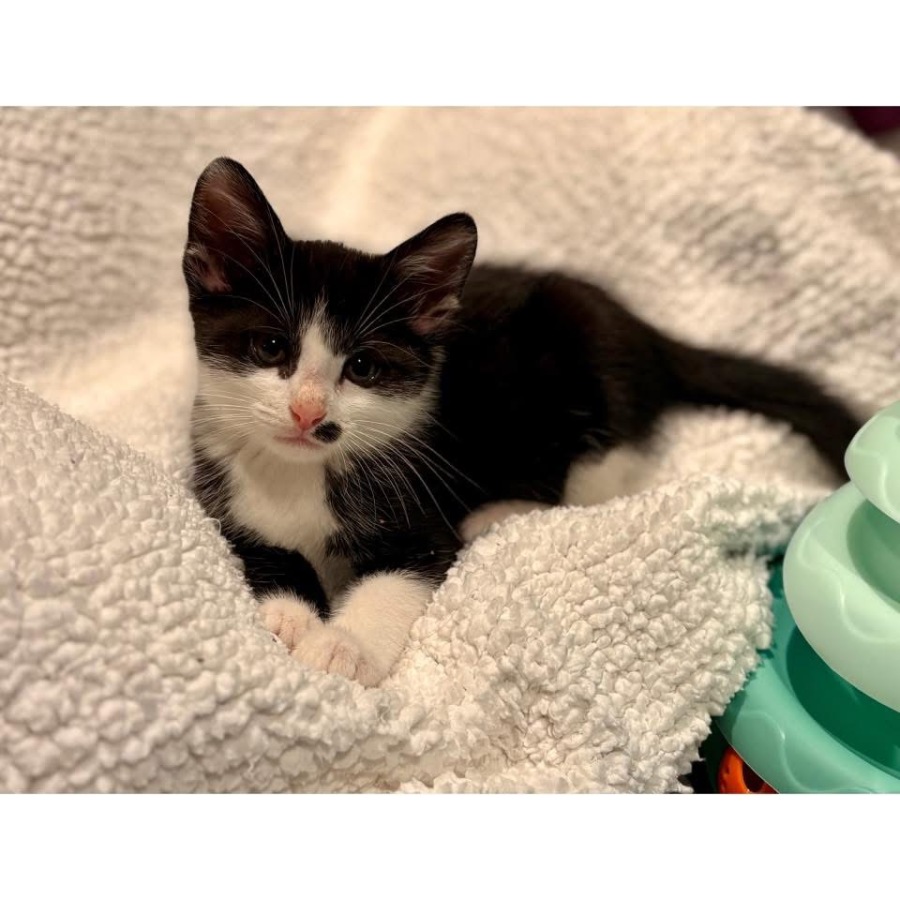 I love to play, wrestle, climb, and run. I enjoy exploring and playing with toys. I love my food and am always grateful for a full belly and a warm bed. My foster family can tell this from the way I purr my heart out while I eat and then fall fast asleep soon afterāstill purring and sometimes with food still on my adorable pink nose! I love cuddles and pats and am so easy to shower with love and affection. I donāt mind a busy house with lots happening ā itās all part of the adventure of life!
