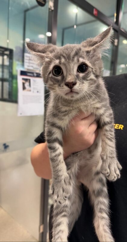 Hey there, I'm Mojo. I’m a friendly and affectionate kitten who would suit most homes! My playful paws are always ready to pounce on anything that moves. I love playing with wand toys and mysterious shadows on the wall! When I’m finished playing, I love nothing more than finding a warm lap to curl up in. I have perfected the art of the irresistible purr. It's like my secret weapon for getting all the cuddles and chin scratches I could ever want. Life's just one big, exciting string of moments, and I'm here to make every second count – whether I'm chasing my tail or sharing some purr-fectly quiet time with my favourite humans. So, if you're up for a bundle of furry fun and a lifetime of companionship, please consider adopting me!