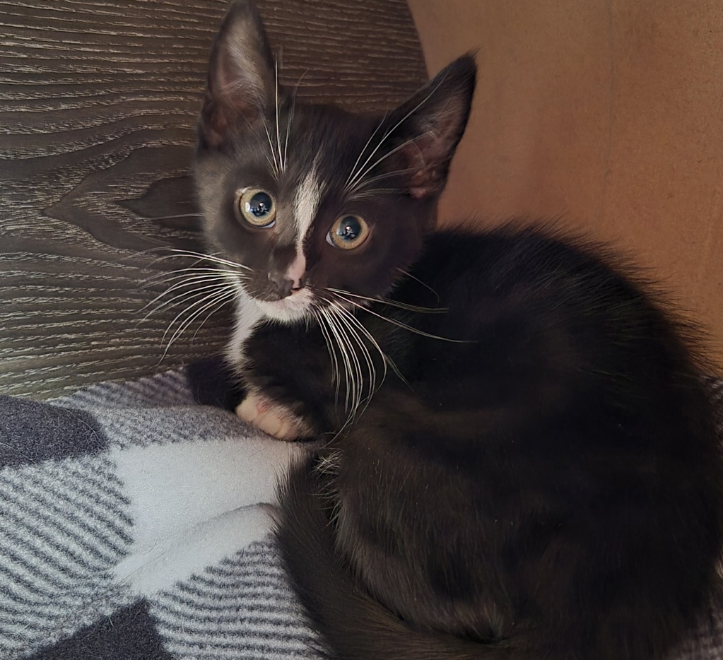 Since we're still young, our personalities are developing, and we'll thrive in a stable home. Please be patient with us as we adjust to our new environment. A safe room to get used to new sounds and smells would help, along with a scratching post, a comfy bed, soft toys, and rolling, bell toys (our favorites)!