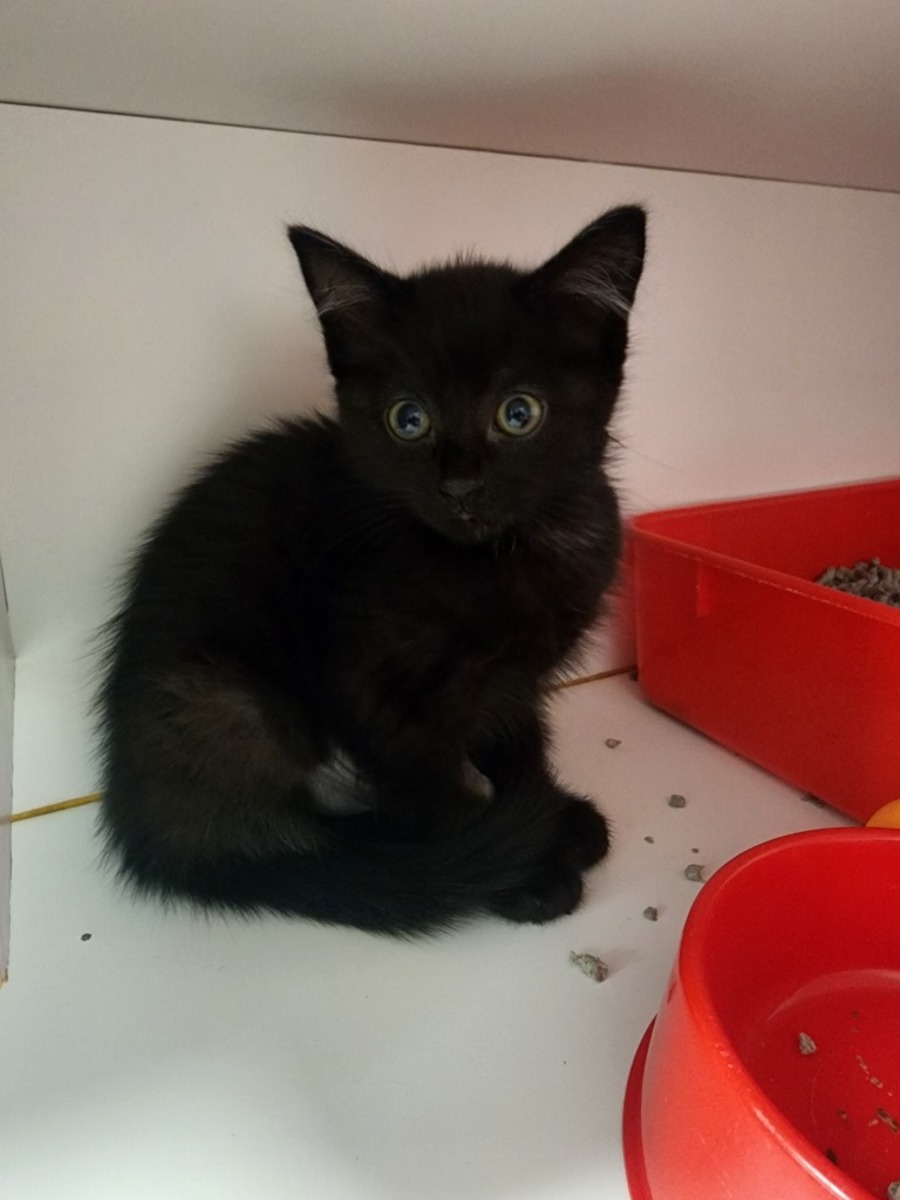 Meet Spook, an endearing and playful kitten with a name that's fitting for his delightful personality. While he may be a little shy at first, this sweet feline quickly warms up and reveals his friendly, fun-loving nature. He’s not just a cat; he’s the purr-fect companion in the making.