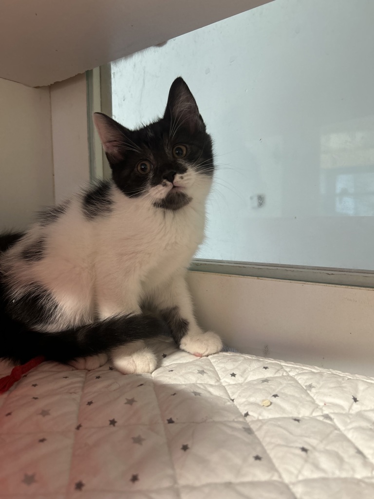 Hi, my name is Pudding. I'm a sweet, shy kitten, but I don't take long to come out of my shell.