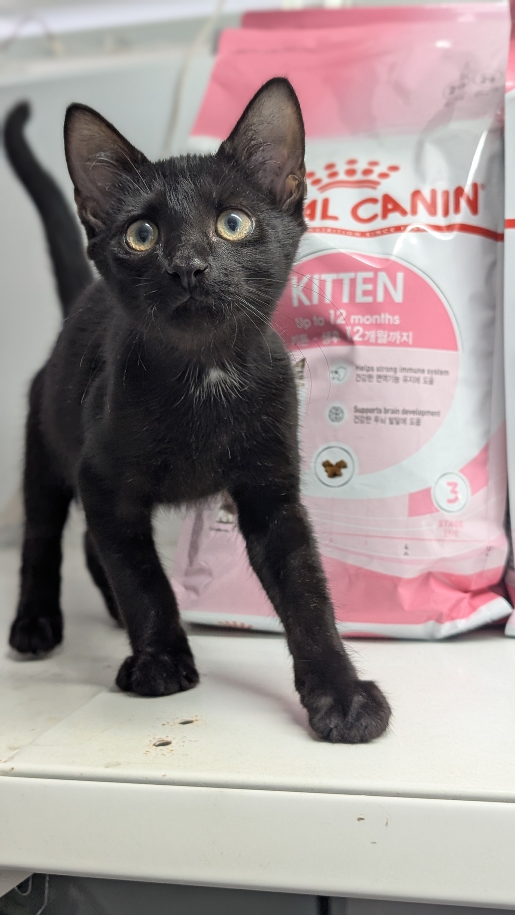 I'm sleek, shiny, and totally rocking the all-black look. Basically, I'm the James Bond of kittens: smooth, stylish, and always ready for action. My hobbies? Zooming around like a tiny rocket, pouncing on anything that moves, and making you laugh with my ninja skills.