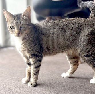 Turbo is a petite, tabby-and-white girl with white feet and chest and a big personality packed into a small frame. She’s playful, curious and frisky, with a gentle and sweet nature that shines once you take a moment to understand her. Turbo will happily keep you company nearby, watching what you’re doing, especially if food or toys are involved.
