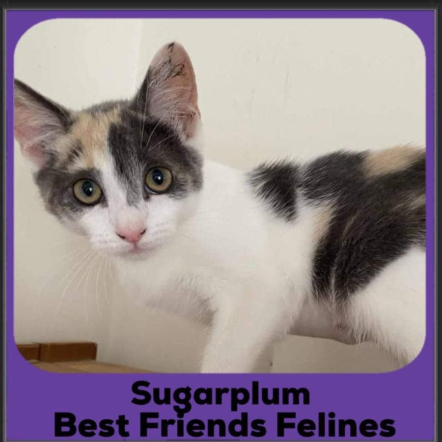 Sugarplum is a gentle, soft-spoken girl with a calm presence that instantly puts people at ease. She may be a bit reserved at first, but she warms up quickly (especially with a morsel of roast chicken in front of her) and offers the sweetest affection. Sugarplum enjoys quiet company, cozy corners, and soft pets while she purrs contentedly. She’s a wonderful match for someone who appreciates a peaceful, loving companion. With her tender nature and big heart, Sugarplum adds a touch of serenity to any household.