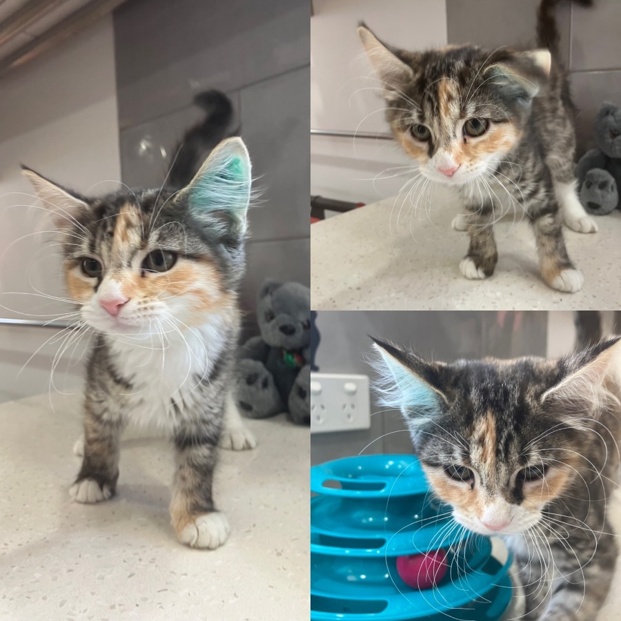 Jupiter is a 12 week old female Domestic Medium Hair tabby tortoiseshell kitten with a gorgeous coat and an even more beautiful personality. This sweet girl is super friendly, gentle, and affectionate, always happy to say hello and soak up attention.