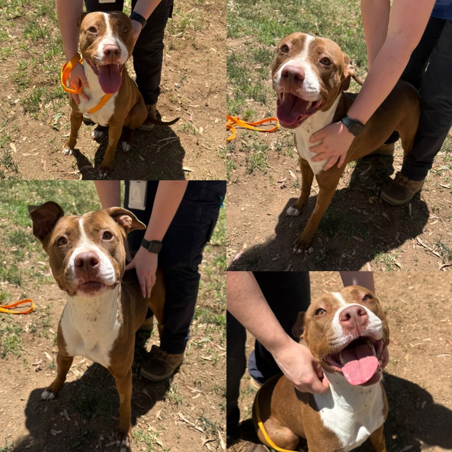 Harper is a sweet, fun loving 11-month-old Staffy mix with a heart full of energy and affection! This playful girl is super social and adores meeting other dogs, she often greets friends with a joyful play bow and full body wiggles that are impossible not to smile at. With the right introductions and supervision, she may also do well with cats.