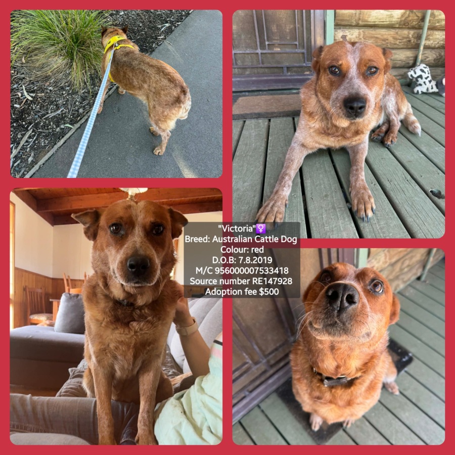She grew up on a farm and has been exposed to various farm animals. Victoria has never been a working dog. She enjoys car rides and is accustomed to travelling on the back of a ute.