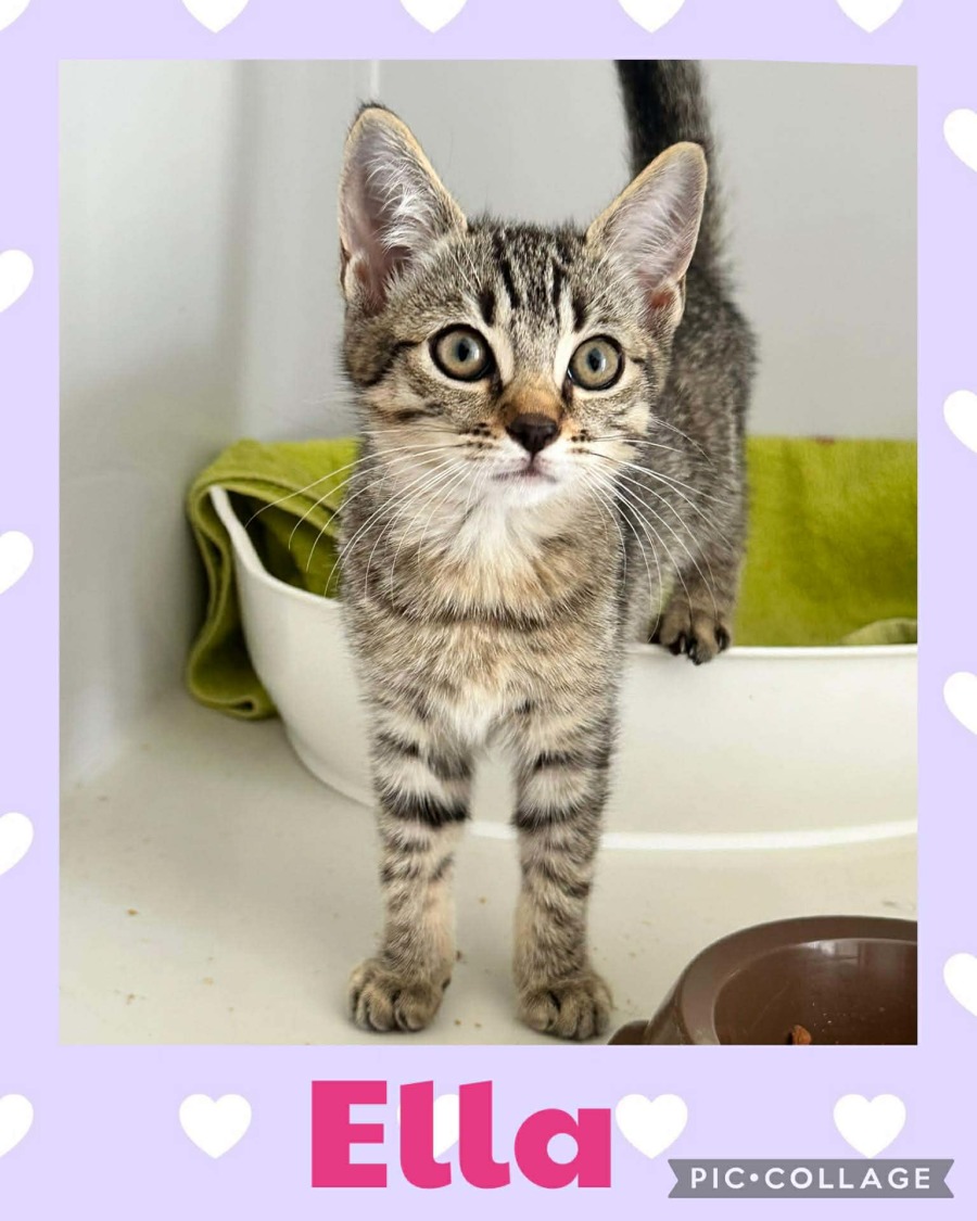 Introducing Ella, a playful and affectionate tabby kitten who is full of delightful chaos and just waiting to bring joy to her new family. This tiny ball of energy is always on the go, with a curiosity that leads her on endless adventures.