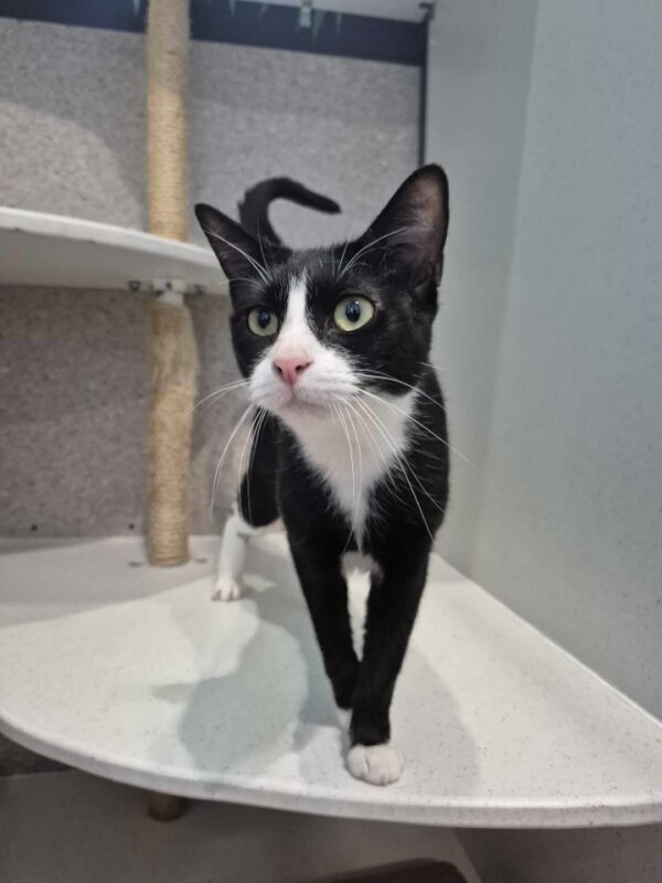 This young black and white beauty is a bit of a shy gal who likes to play it cool at first. She's a firm believer in the philosophy that all good things take time - and that includes her affection. But once she warms up to you, she'll show you just how sweet and loving she truly is. Dora is the perfect companion for someone who appreciates the quieter things in life. She's not one to demand constant attention - she's perfectly happy keeping herself occupied while you're at work or busy. Whether she's curled up in her favourite hiding spot or silently observing the world with her wide, curious eyes, Dora is the queen of calm and independence.