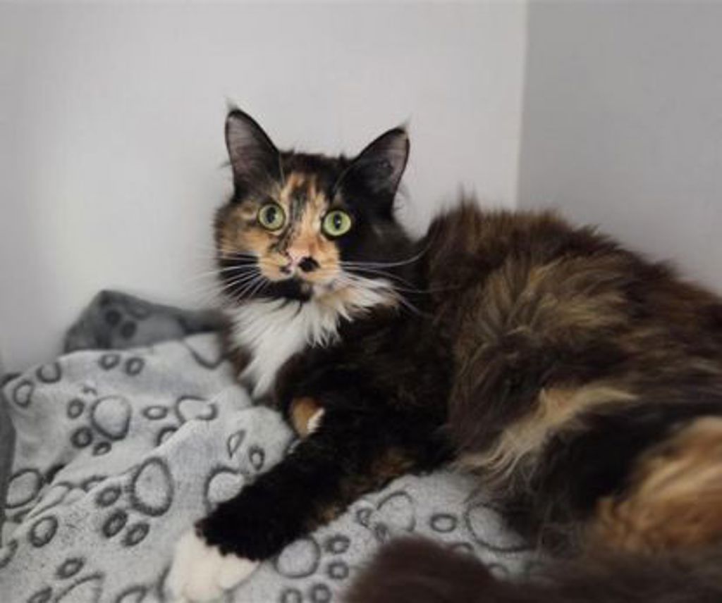 Nutmeg is a stunning 1½-year-old calico who came into our shelter as a stray. When she first arrived, the world felt like a big, scary place and she was quite timid and unsure. With time, patience, and kindness, Nutmeg has begun to find her confidence, and it's been beautiful to watch her come out of her shell.