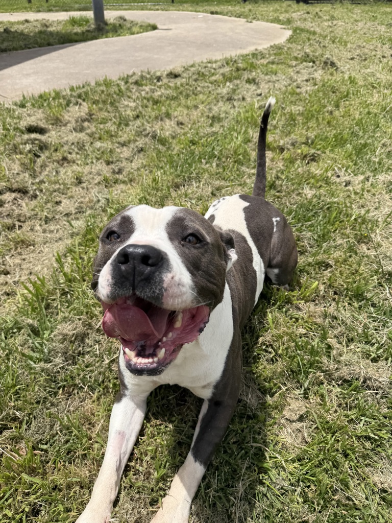 Tyson is a 3-year-old male Staffy with a big personality and an even bigger heart. He's a goofy, boisterous boy who loves to make people smile with his silly antics, but underneath all that fun energy is a super loving and affectionate companion.