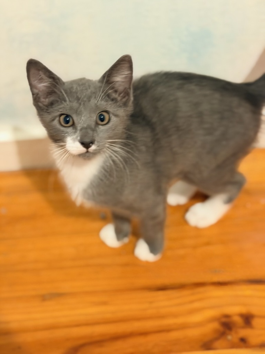 Zoe is a tiny sweetheart with a soft grey coat, adorable white socks and the most gentle loving personality. She is the definition of a little darling and has a way of quietly melting hearts wherever she goes.