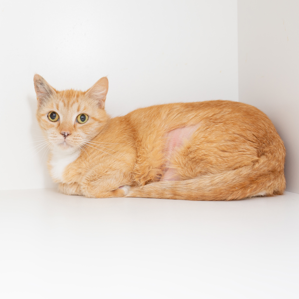 Sophie is a lovely ginger cat with a gentle, slightly shy personality. She might take a little time to get to know you, but the quickest way to her heart is through her stomach - a tasty treat or two, and you'll have a new best friend!