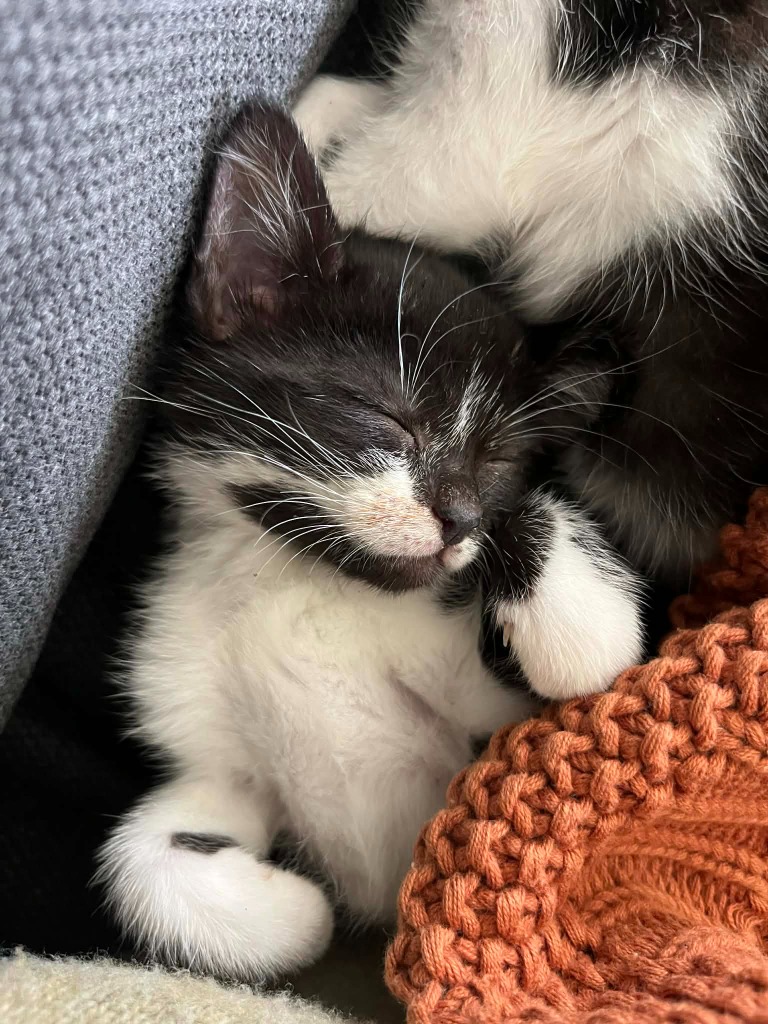 Arna is a sweet little girl with the perfect balance of independence and affection. She’s happy to do her own thing during the day—usually climbing anything she can and keeping an eye out for tasty bugs—but come evening, she’s more than ready to curl up for a cuddle. Curious, confident, and full of kitten charm, Arna would make a lovely companion for someone who appreciates a playful spirit with a soft, snuggly side.