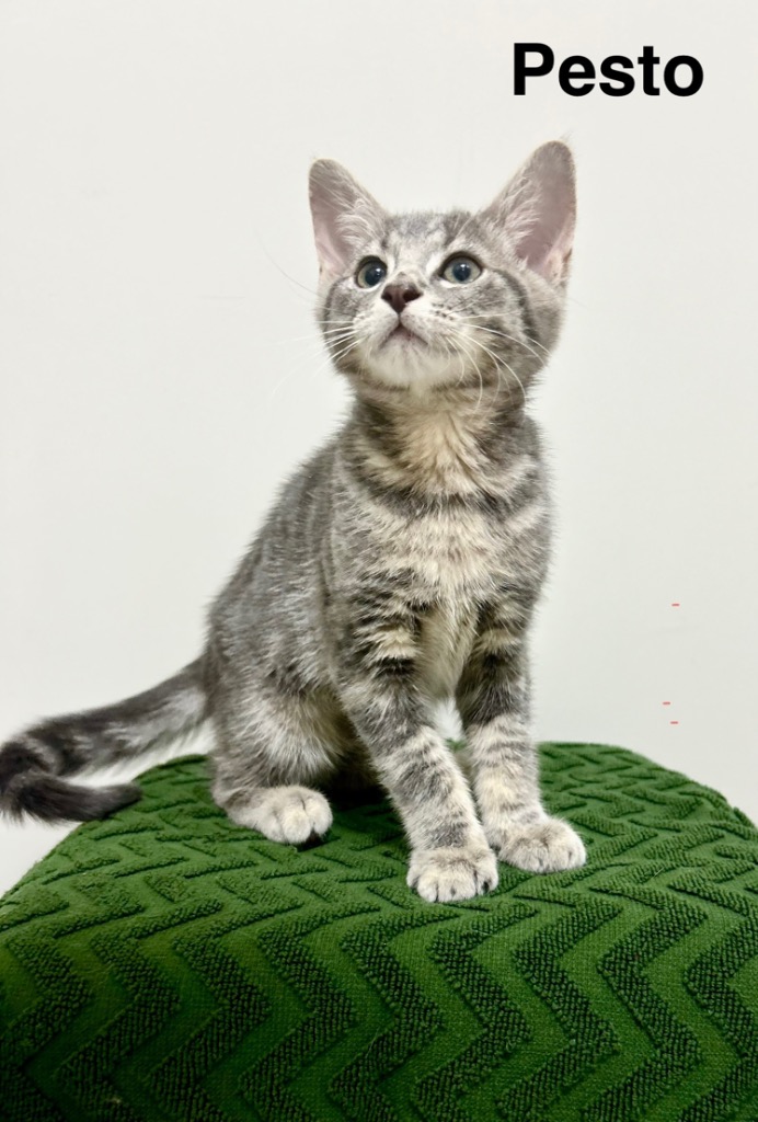 Hi, I’m Pesto… a curious, sweet little boy with soft, fluffy fur and a gentle personality. I love exploring new things, watching the world around me, and finding cozy spots to curl up in. Whether I’m playing, purring, or just relaxing, I’m happiest when I’m near my people.