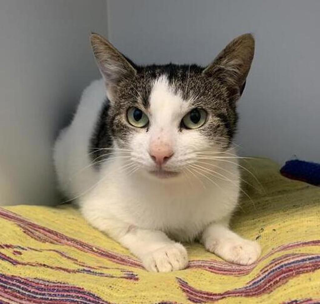 Matilda is a shy, gentle soul with a soft heart and a quiet charm. She enjoys gentle patting and, once she feels safe, loves to climb into laps for attention. She can be a little nervous around sudden movements and new situations, so she would be best suited to a quiet, calm household with adults or older teens who understand her sensitive nature. Matilda is looking for a home where she can feel secure and enjoy being around her people.