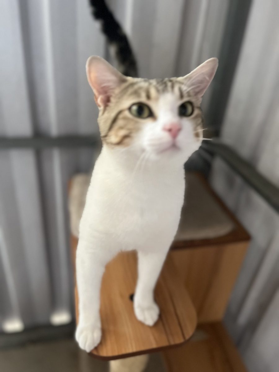 Giovanni is the most sweetest gentle boy he is a chilled lad he enjoys sitting on the cat tree stretching out just enjoying life he enjoys his toys and loves his food he isn’t fussy eats what he's given if you are after a quiet gentle soul to be your best best mate he's the boy for you