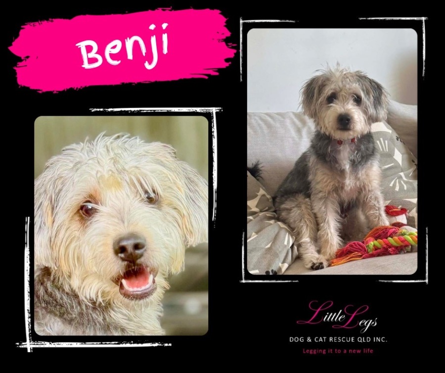 Benji is very smart and active, and like many young dogs, he needs plenty of mental stimulation, training, and appropriate outlets for his energy. Without this, he may decide to entertain himself by chewing—something he’s continuing to learn better habits around.