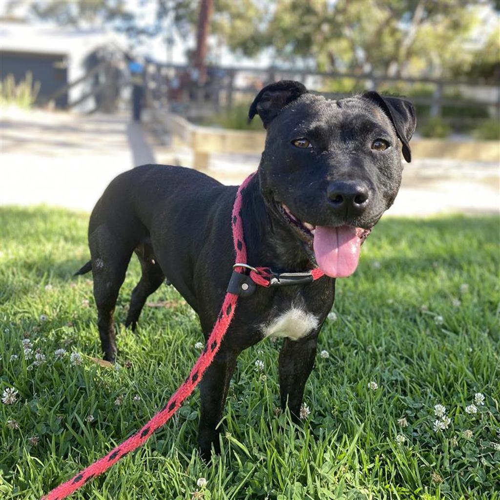 She is a very sweet, gentle girl with a soft soul and a heart full of love. She can be a little shy at first, but once she warms up, her loyal and lovely nature truly shines. She will thrive in a quiet, routine home with older children or adults who are home often and can shower her with all the TLC she deserves. Zola may enjoy sharing her home with an easygoing male dog friend, pending a successful meet and greet. This sweet girl will adore enrichment and ongoing training to keep her mind and body happy and healthy. She loves peanut butter filled Kong toys, relaxing in sunny spots, gentle training sessions, sniffy walks and spending quality time with her people.