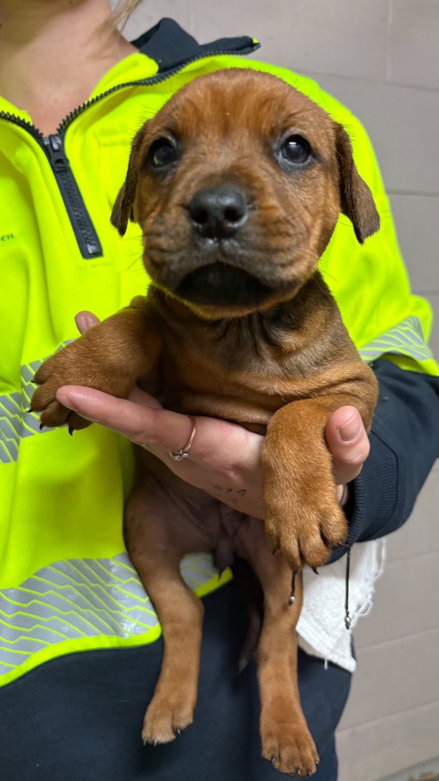 Introducing Twizzle, an adorable 7-week-old Staffy mix puppy with the temperament of an affectionate sweetheart. Weighing in at just 2.1kg, Twizzle is the smallest of her litter of nine but has a spirit that’s larger than life. She has a loving nature, and her tiny heart is ready to find the perfect family to shower with affection.