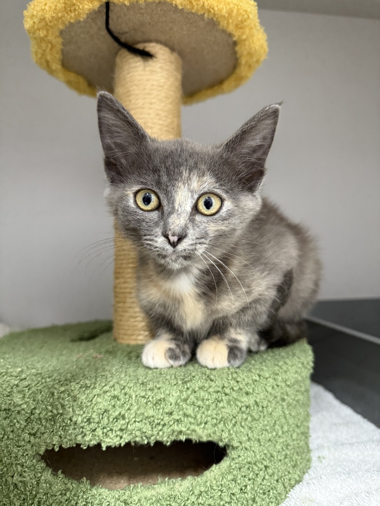 Meet Pickle, a charming 3-month-old Blue Cream Tortoiseshell kitten with a striking, unique coat that makes her truly special. This adorable domestic short-haired girl arrived at our shelter alongside her sibling, and now she's ready to find her forever home. Pickle is curious, playful, and full of love, eager to explore her surroundings and cuddle with her favorite humans. She thrives in a caring environment where she can grow and flourish. If you're looking for a sweet, beautiful kitten to add warmth and joy to your life, Pickle is the perfect fit. Come meet her and give her the loving home she deserves!