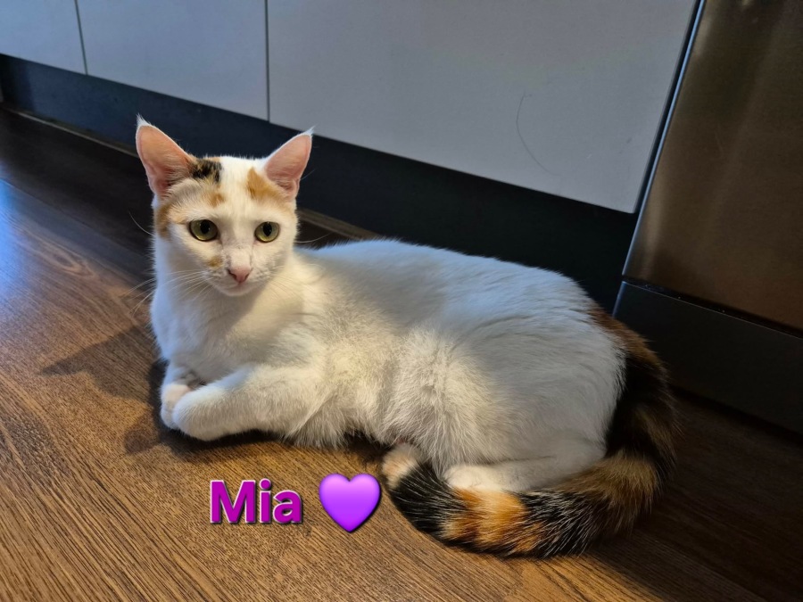 , a delightful domestic short-haired cat with a personality that shines just as bright as her stunning eyes. Born on September 1, 2023, Mia has the perfect blend of sweet charm and quiet confidence. She's seeking a loving home where she can shadow her humans, showing endless affection and engaging in heartwarming conversations. Mia thrives on companionship and has mastered the art of head butts, ensuring she never misses out on a well-deserved pat.