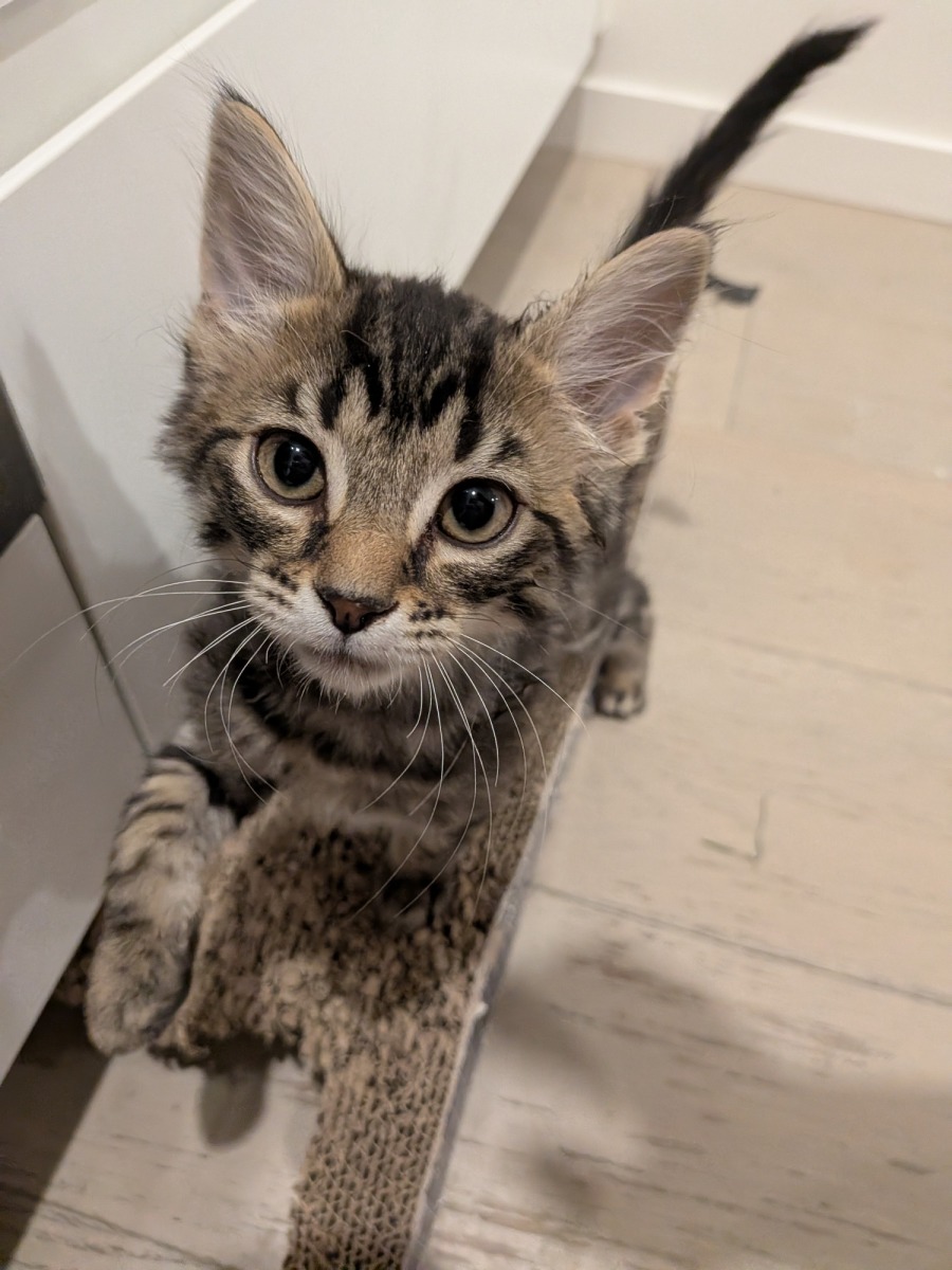 Slim is excited to play with his kitty friends and people, and loves any toy he can carry around - he's a fetch pro in the making!