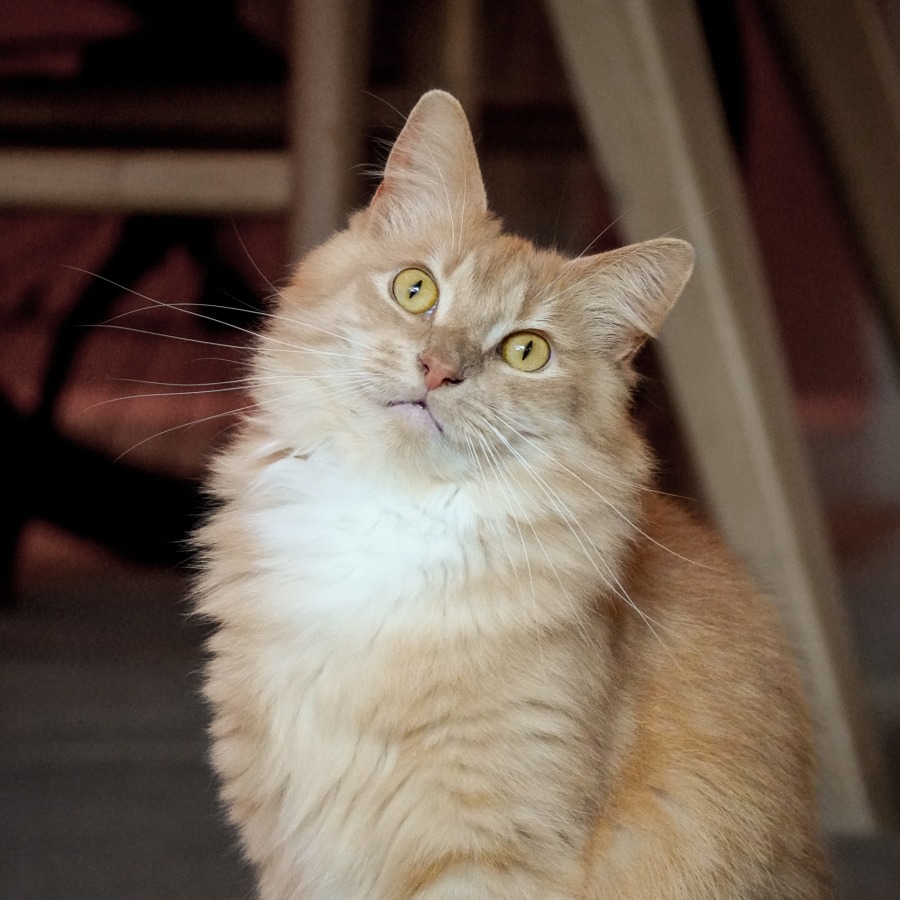 Denny, with his light ginger medium fluff and darker green eyes, is Sally's shadow. Denny is sensitive and sweet-natured and often relies on Sally for reassurance. Denny will start shy at first, but once he feels safe with his human/s, his lovely personality comes out. He’s wonderfully playful especially when the feather toy comes out, and his clumsy, goofy antics will make you smile every day. His predictable 4pm wrestle sessions with Sally are funny and entertaining, and always end in snuggles and soft purrs.