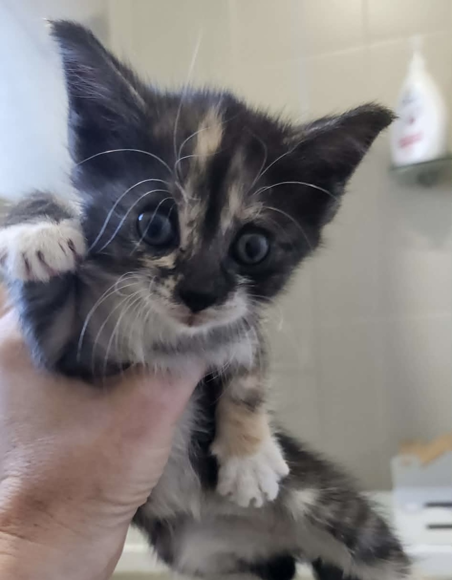 She is in a foster home with dogs so would suit a home with a little cat social dog friend or a cat friend. Kittens do much better with a friend and it is worth researching, "solo kitten syndrome" to find out why.