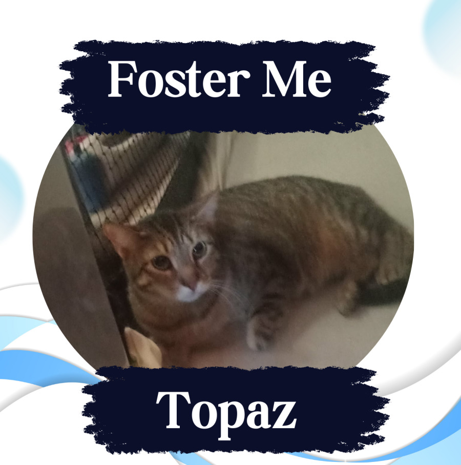 Meet Topaz, a gentle and shy feline who's learning what it means to trust and be loved by humans. Though initially reserved, she has been making significant strides in coming out of her shell, taking each step with cautious optimism. Topaz needs a patient and understanding home that will provide her the time and space to build a connection at her own pace.
