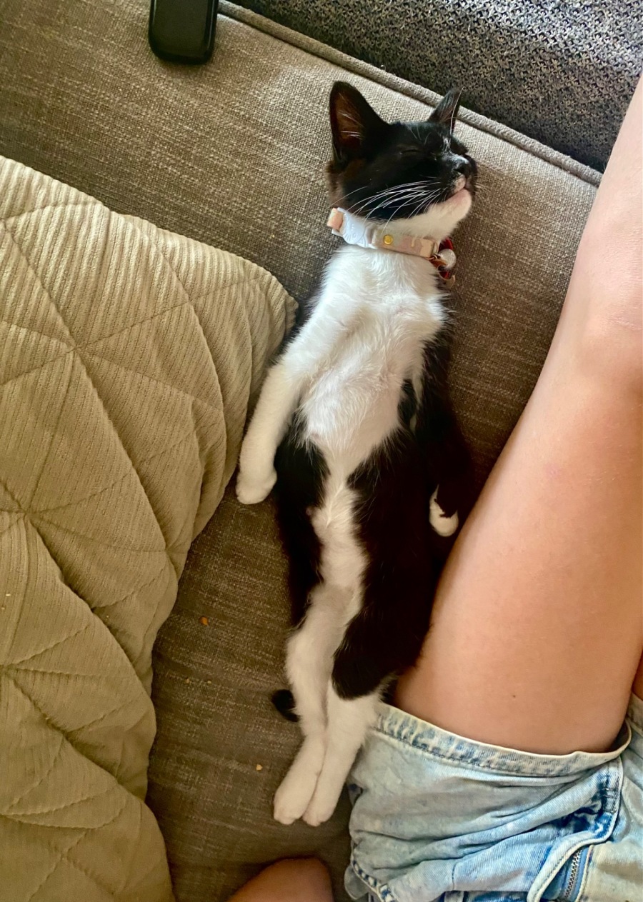 Meet the legendary Maggie, affectionately known as Magpie! This little feline wonder is as charming as she is adorable, having captured the hearts of everyone she meets. She’s a survivor! With a little white stripe down her nose and her wise little green eyes she’s quite captivating!