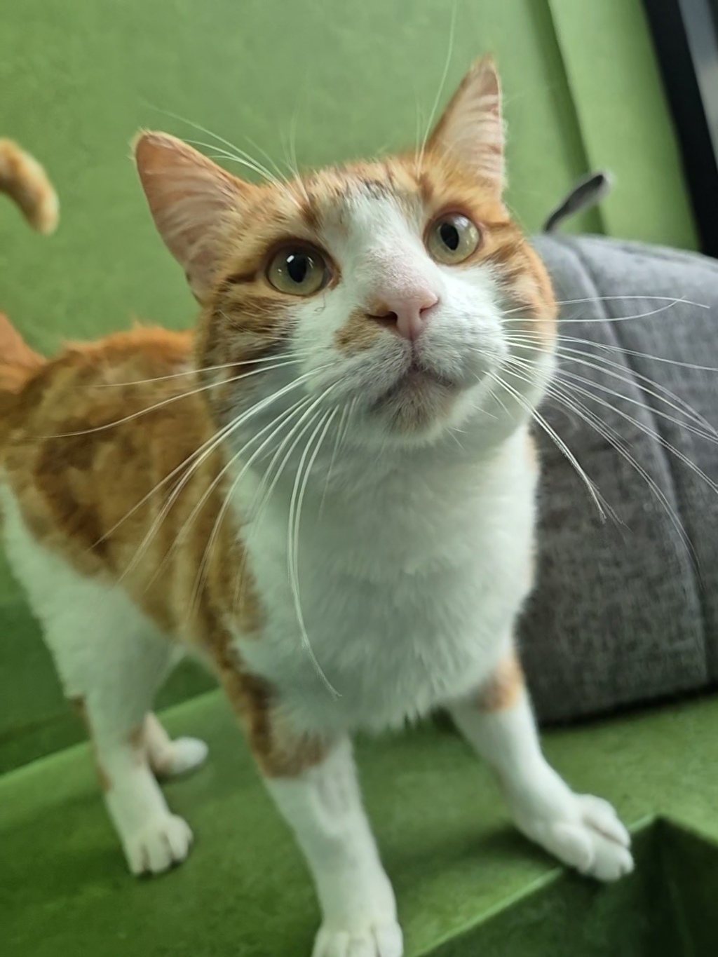 Lion must go home with his bonded brother, Tiger, as their close relationship provides reassurance and stability for them both. Together, they will thrive in a peaceful, indoor-only home with a predictable routine where they can feel safe and unhurried. He is best suited to an adult home or cat-savvy teens who understand shy cats and are happy to let him set the pace.