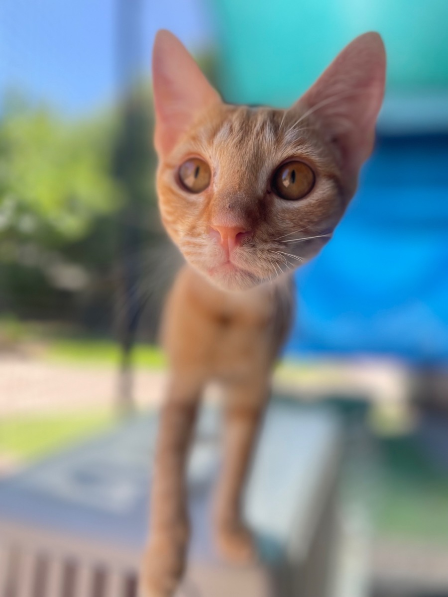 Wally is a vibrant personality. A typical male ginger this boy is extremely loving and affectionate. He absolutely adores any human attention. Wally currently lives amongst cats and sees small dogs outside of his enclosure which he isn’t phased by. This boy is full of love and fun if you’re willing to embrace it with some feathers in strings or cat balls.