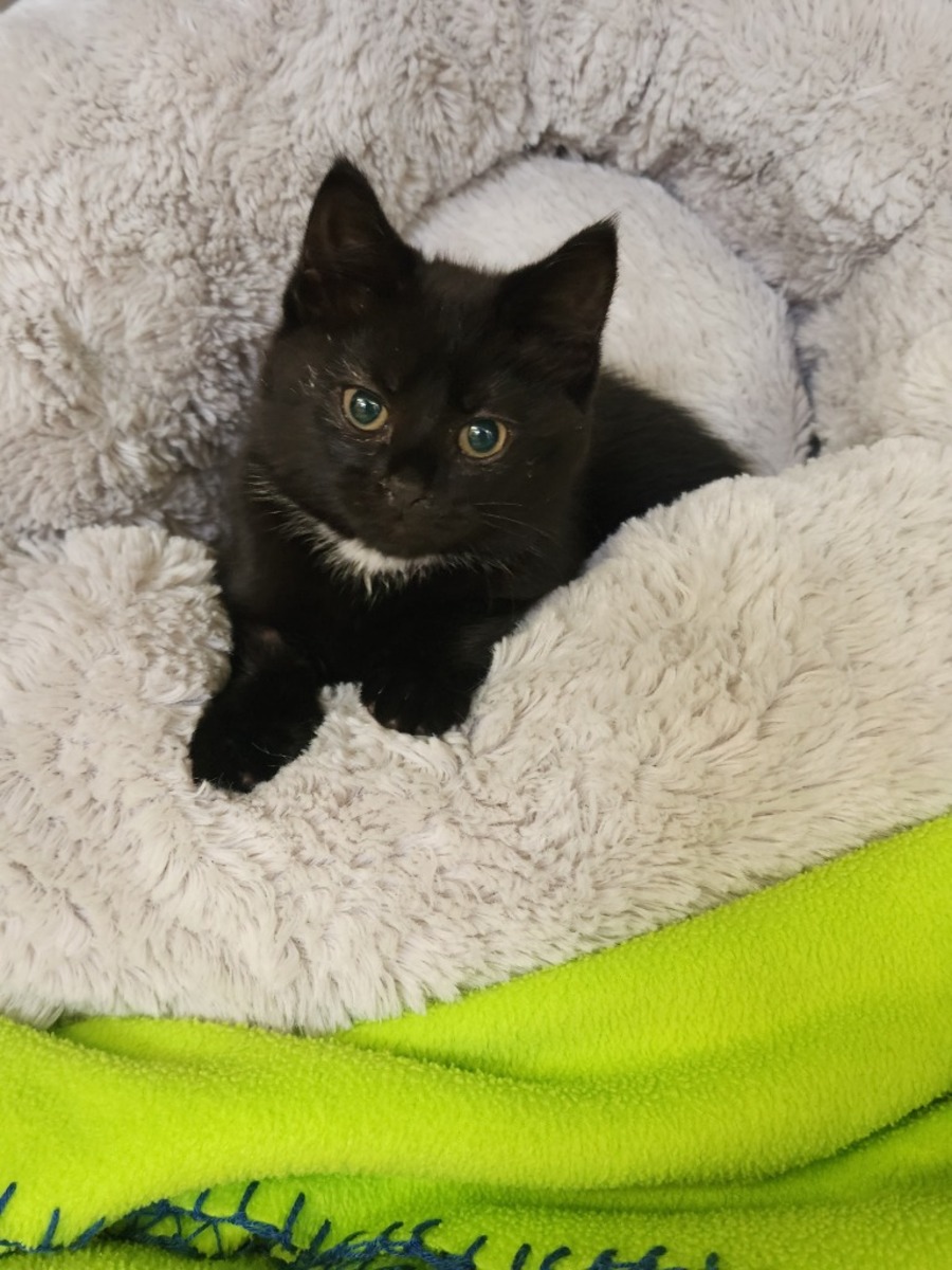 Bells is active and enjoys her playtime, often finding creative ways to interact despite her unique gait. Her future home should ideally have some accommodations to aid her mobility, ensuring she navigates comfortably and safely. A single-level home would be perfect for this adaptable little adventurer. Plus, she gets along just fine with other cats and kids, making her an excellent addition to a loving family.