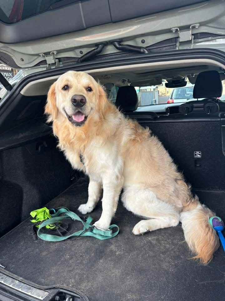 Sonny is a big dopey doofus who loves everyone and everything and just wants to play. He's a big sook who has been raised in a mainly female household but is great with men too. Very placid and obedient, he will sit, stay, drop and eat on command. He travels well in the car but doesn't like getting in, he likes to be lifted like the prince he is. He adores children but can be a bit too boisterous for children under 10. Not realising his size, he can easily bowl them over. He also cheats at tug of war games so supervision around children is essential. He is a gentle giant who will submit to other dogs and politely bow before initiating play. He sleeps through the night on his beautiful big bed, and is perfectly toilet trained. He of course would love to sleep on the bed with you if allowed. He needs lots of exercise and love and would be the perfect addition to any family.