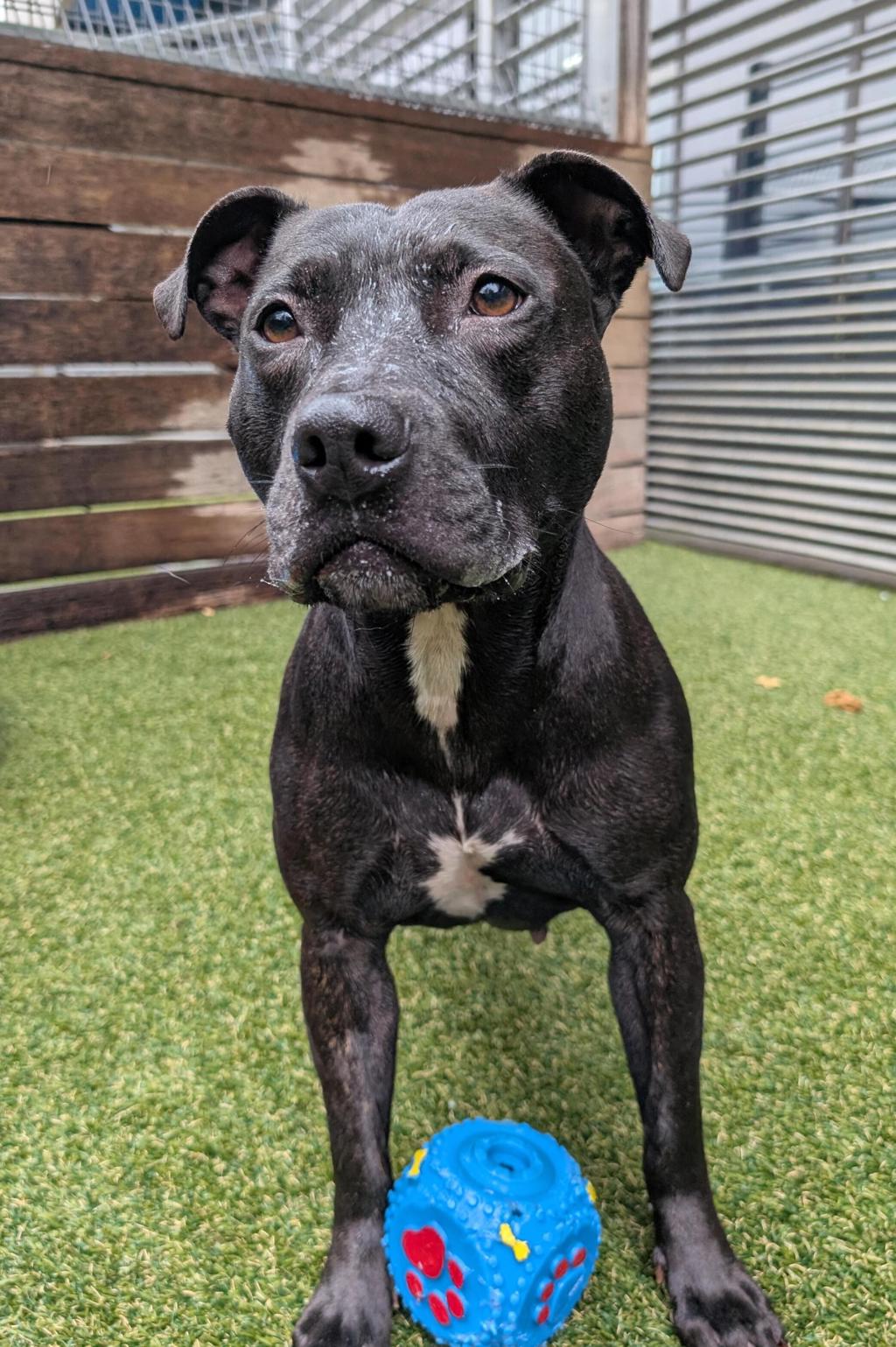 Meet Rama, a lovely Staffy girl with a big personality and a strong independent streak. She is an intelligent and spirited dog who has a very high toy drive and can hyperfixate on them. She'll do best with an experienced adopter who can help channel this enthusiasm in healthy, structured ways.