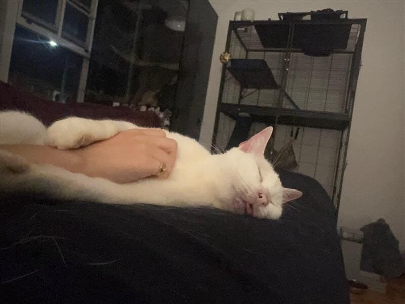 Hi, I'm Hannah. I'm a female Domestic Short Hair, 13 years old. I’m a relaxed, calm cat who loves a quiet, peaceful home where I can nap in sunny spots and enjoy gentle company. I may take a moment to trust you, but once I do, I’ll be a loyal, affectionate friend. Best with children? I have no known issues around kids. I thrive in a quiet, routine-filled household with patience and kindness. I like soft pets, slow pats, and cozy corners to curl up in. My ideal home is peaceful and calm—no rush, no chaos. I would benefit from a veterinary consult prior to adoption to ensure I’m healthy and ready to settle in. If you’re seeking a steady, loving companion who enjoys quiet moments, I might be the one for you.