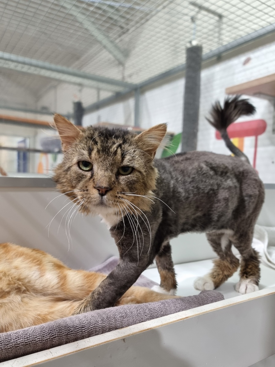 I arrived at the shelter very matted and had to get a new haircut to feel comfortable again. I will need to be brushed regularly once my fur starts growing back.