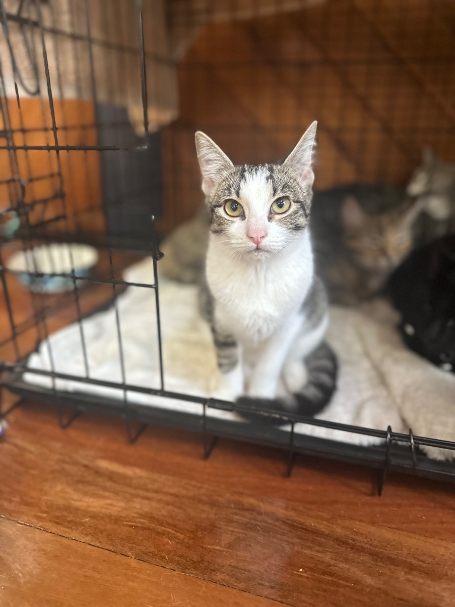 Meet Poppy, our intrepid young feline who's full of sass and personality. Poppy has quite a spirit about her; she's an adventure seeker who loves to explore her surroundings with curiosity and poise. This confident and charismatic kitty is ready to bring a splash of excitement and playfulness into the home of her new family.