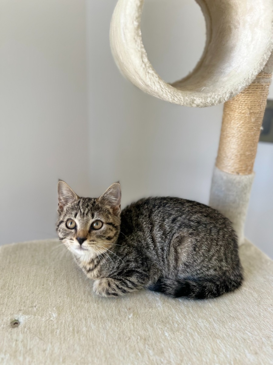 This 3-month-old male tabby kitten is looking for a forever home filled with love and affection. He may be shy at first, needing a little time to feel safe, but once he opens up, he will shower his family with endless love and loyalty. A patient, caring home will help him thrive and become the perfect, devoted companion.