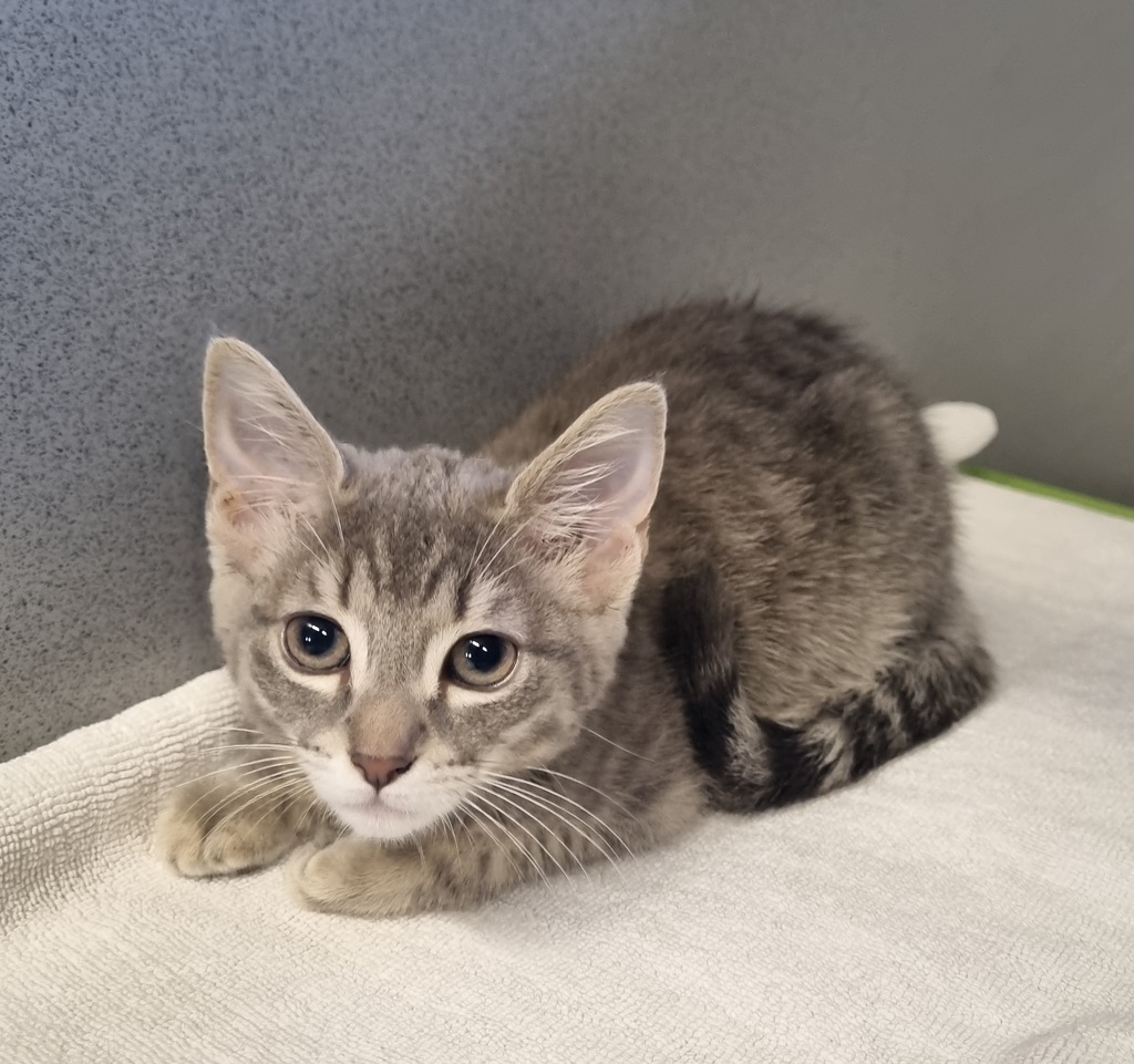 Meet Hope, a sweet 4-month-old Grey Tabby with captivating shy-looking eyes that melt your heart. This adorable Domestic Short Hair kitten is gentle, curious, and eager to find a loving forever home. Despite her initial shyness, Hope thrives in a calm environment where she can build trust and feel secure. She loves soft cuddles and exploring her surroundings at her own pace. Hope is looking for a patient, caring family to give her the love and reassurance she deserves. If you're ready to provide a safe haven for this beautiful, affectionate kitten, Hope can't wait to meet you!