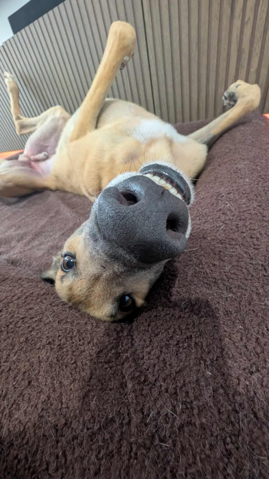 Sid is a true character with a flair for entertainment. He’s known for his playful antics, including his signature roaching pose, complete with rolling around and serenading you with a happy little tune. While he loves to explore, Sid also has a lovely off switch. He happily settles at home, can hold his toileting needs overnight, and will let you know when he needs to head outside. As he continues to settle into pet life, he’s still polishing his indoor manners and may occasionally need gentle reminders, something that’s already improving with routine and guidance.