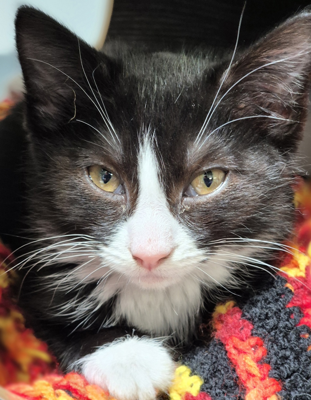 Since we're still young, our personalities are developing, and we'll thrive in a stable home. Please be patient with us as we adjust to our new environment. A safe room to get used to new sounds and smells would help, along with a scratching post, a comfy bed, soft toys, and rolling, bell toys (our favorites)!