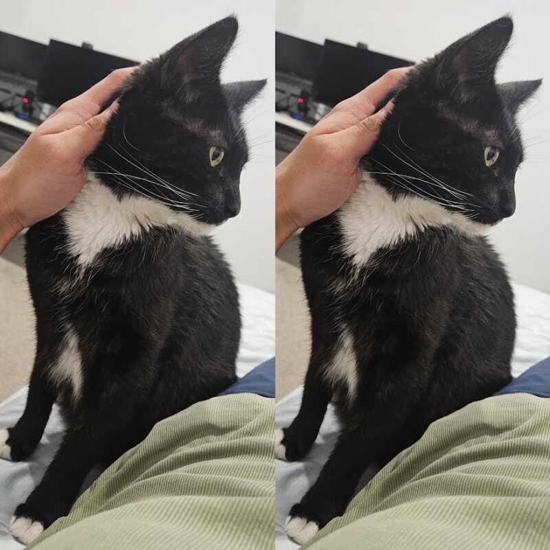 He's got a playful side too - Zeke gets the occasional zoomies and absolutely loves exploring high-up places that defy logic. His current favourite spot is the top shelf in the wardrobe, poking his little head out and ask for a scratch every time humans walk by. You’ll often find him perched somewhere impressive, keeping watch over his kingdom (aka your living room).