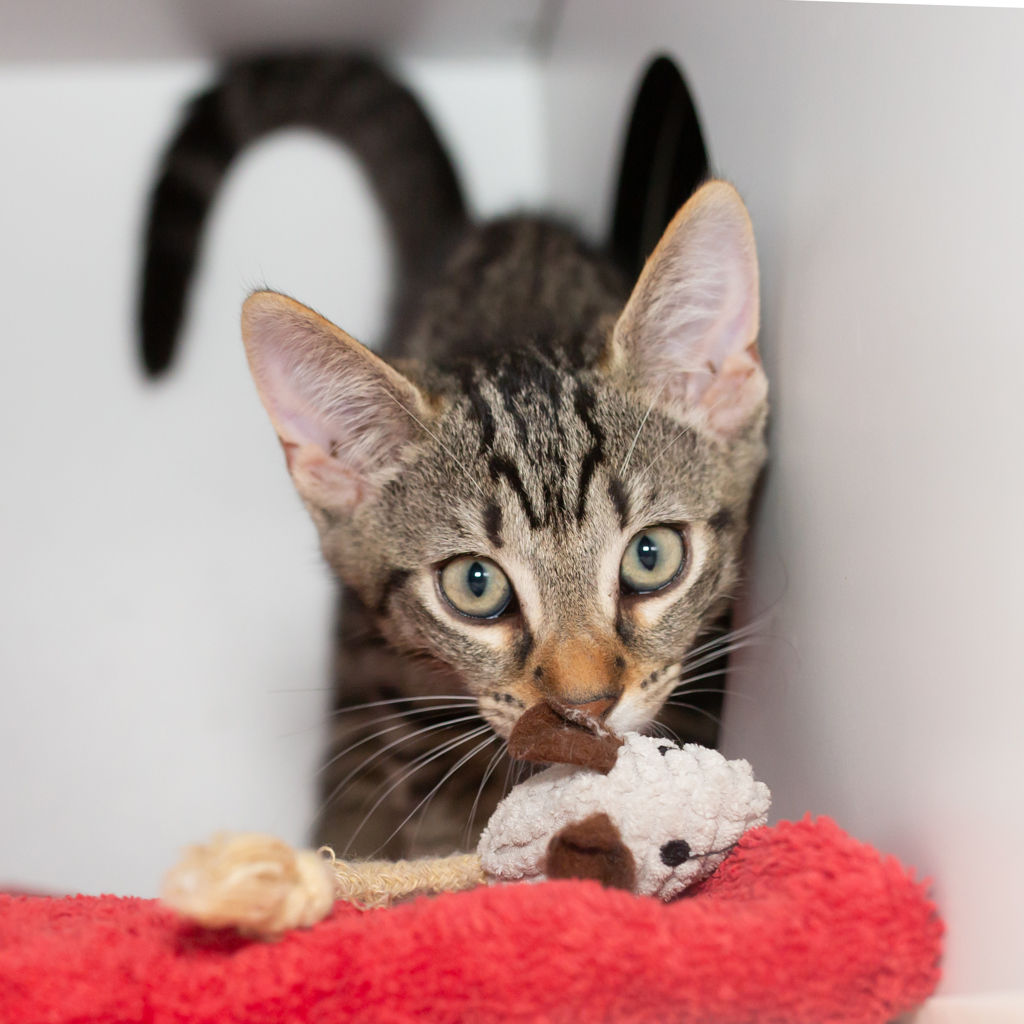 Tim is a gorgeous tabby boy with movie-star looks and a whole lot of growing still to do. This handsome kitten is on the hunt for a loving home this Christmas-one that can help guide him as he figures out who he wants to be when he grows up.