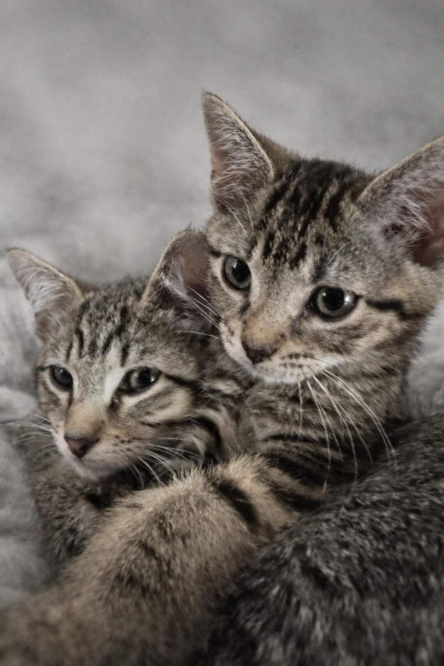 Both boys had a tough start to life. Rossco was rescued just in time from the street, narrowly avoiding being hit by a car. Bobee was found as a stray kitten, sadly losing his sibling. Through it all, they’ve formed a close bond and now find comfort and confidence in each other.