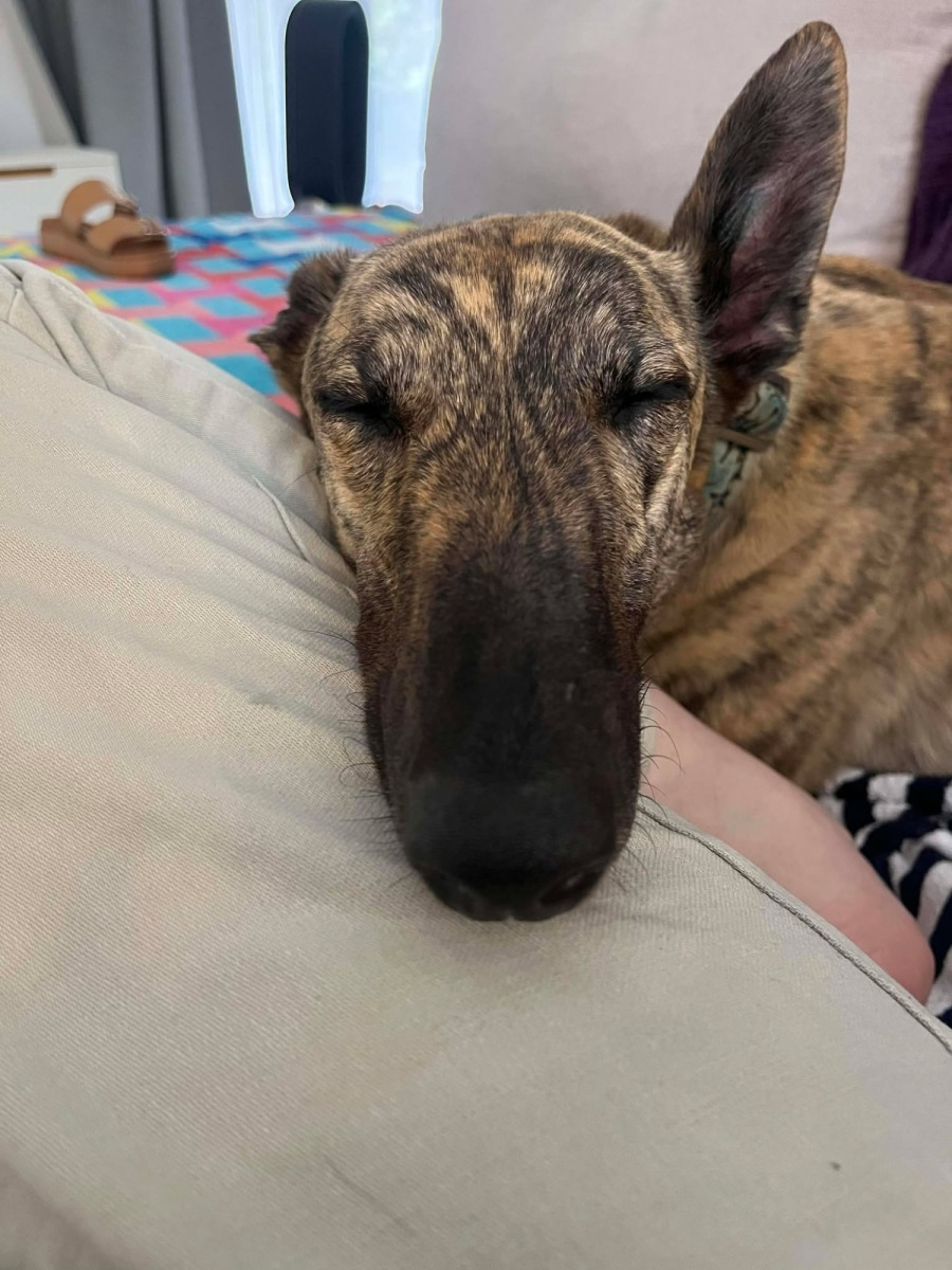 Meet Alice, the delightful greyhound who is eager to find her new family! Alice has a heart of gold and a gentle nature that makes her a fantastic companion for families, singles, and everyone in between. Whether you live in an apartment or a house, she will adapt beautifully, as she’s content lounging quietly indoors and has excellent manners when inside.